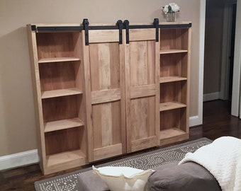 This is a great looking media center plan that really makes the farmhouse look accessible for whatever style the rest of your home is.